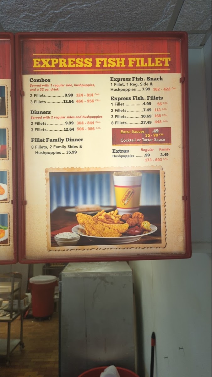 2 Pieces Express Fish Filets with a Regular Side and 32oz Drink. You can upgrade either for a little more.324-814 CAL.
