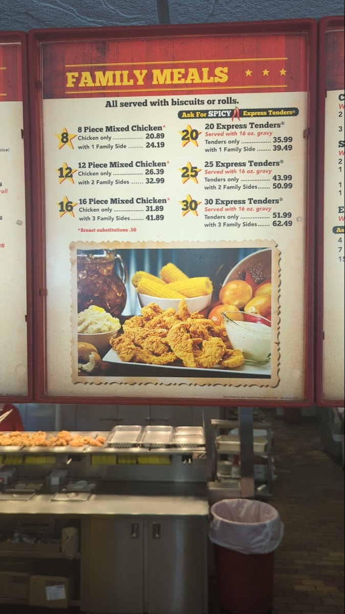 16 Pieces Chicken Mixed, with 3 Family Sides and Rolls or Biscuits.