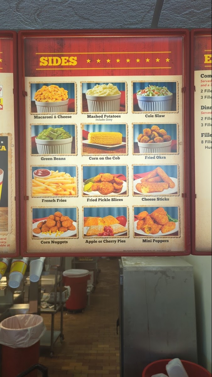 3 Pieces Express Fish Filets, served with two (2) regular sides. You can upgrade the sides for a small charge. 466-956 CAL.
